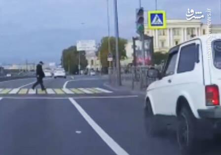 یک پیرمرد روس که قصد داشت با عجله از عرض خیابانی در شهر سن پترزبورگ عبور کند، تصادف وحشتناکی را خلق کرد. با وجود شدید بودن برخورد خودرو به عابر پیاده، پیرمرد زنده ماند و فقط کمی مجروح شد.
