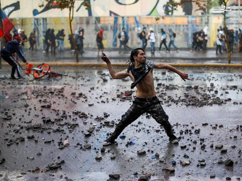عکسی جالب از یک سگ در صف معترضان شیلیایی و علیه پلیس ضد شورش تبدیل به سوژه رسانههای دنیا بدل شده است.