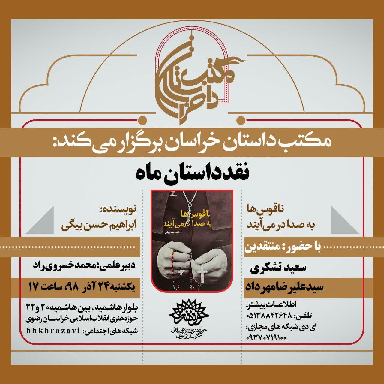 حلقه وصل: به همت حوزه هنری خراسان رضوی سلسله جلسات نقد داستان در مکتب داستان خراسان برگزار می شود.