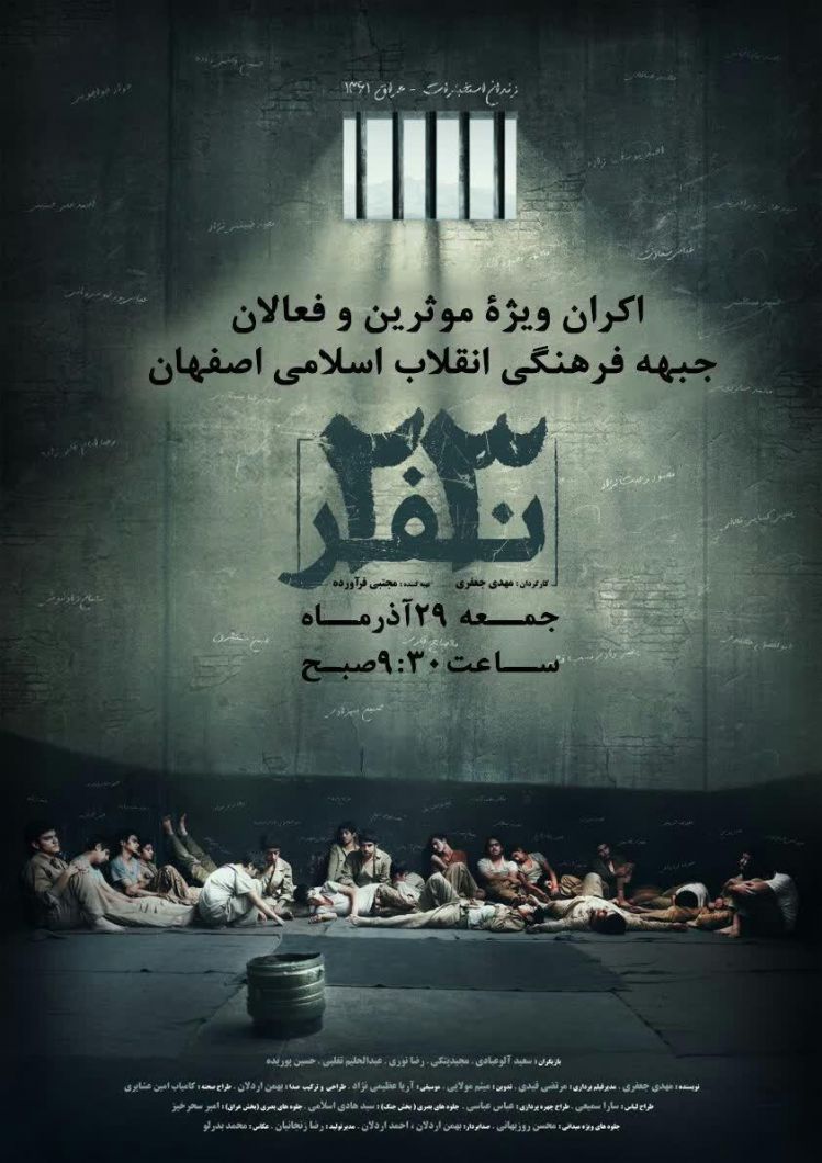 فیلم سینمایی «۲۳ نفر» از سوی ستاد مردمی جبهه فرهنگی استان اصفهان ویژه ی فعالان فرهنگی و مؤثرین در ر سینما سپاهان اصفهان اکران اختصاصی می شود.