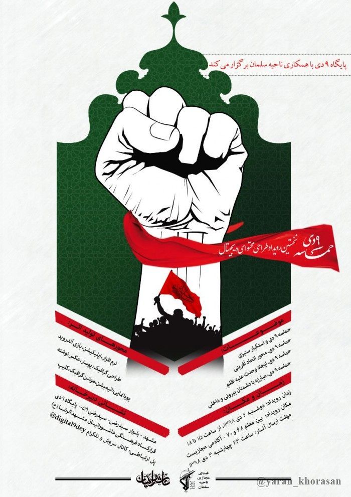 حلقه وصل: نخستین رویداد تولید محتوای دیجیتال با موضوع «حماسه 9 دی» ویژه فعالان فضای مجازی و طراحان انقلابی مشهد برگزار می شود.