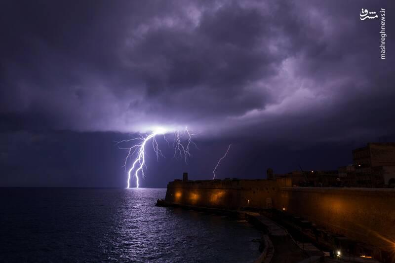 تصویر دیدنی از برخورد صاعقه با دریا در ساحل جزیره Fort St Elmo در جنوب ایتالیا را میبینید./ عکس: Darrin Zammit Lupi