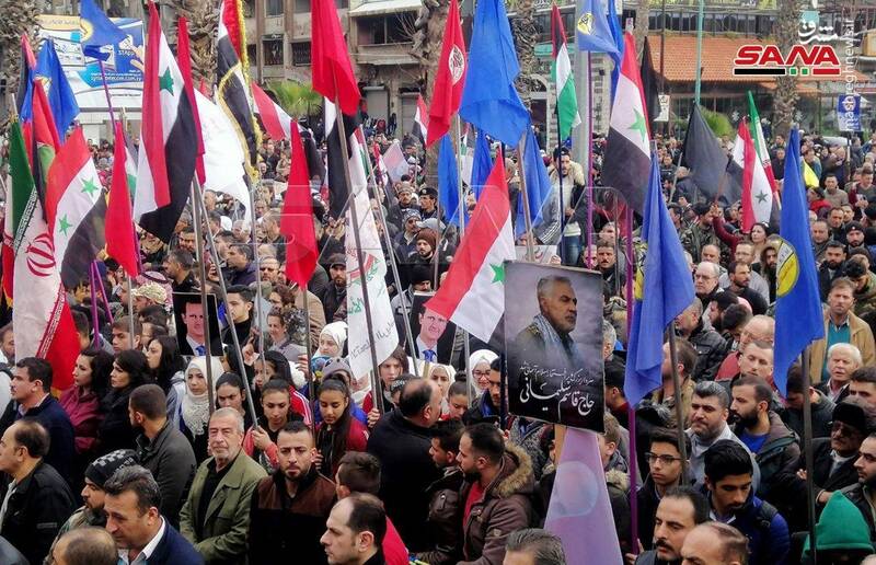 تجمع مردم سوریه در میدان ساعت حمص علیه ترور سپهبد سلیمانی و یارانش توسط نیروهای تروریست آمریکایی