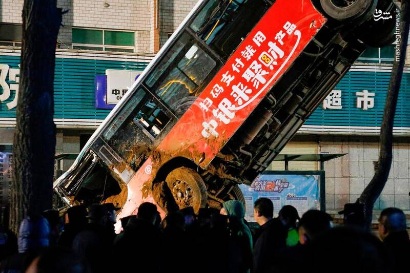 عکس/ نشست زمین یک اتوبوس را بلعید