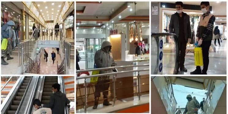 تصویر زیر دانشآموزان بسیجی شهرقدس از توابع شهرستانهای استان تهران را نشان میدهد که در حال ضدعفونی پاساژهای این شهر هستند.