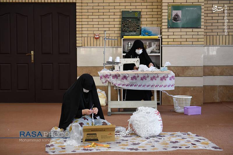 تعدادی از بانوان طلبه جهادگر با چرخهای خیاطی خود در حوزه علیمه حضرت آمنه (سلام الله علیها) قم مشغول تولید ماسک برای بیماران و کادر درمانی بیمارستانها هستند.