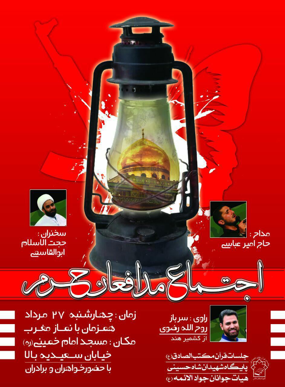 این اجتماع چهارشنبه 27 مردادماه با روایتگری سرباز روح الله رضوی در کشمیر هند همزمان با نماز مغرب و عشاء برگزار می شود.