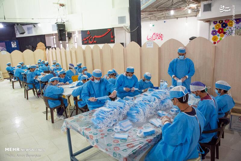 کانون فرهنگی رهپویان وصال شیراز در ۲ شیفت با حضور ۱۵۰ نیروی جهادی روزانه ۲۰ هزار ماسک بهداشتی جهت استفاده کادر درمان و مردم تولید و عرضه مینماید.