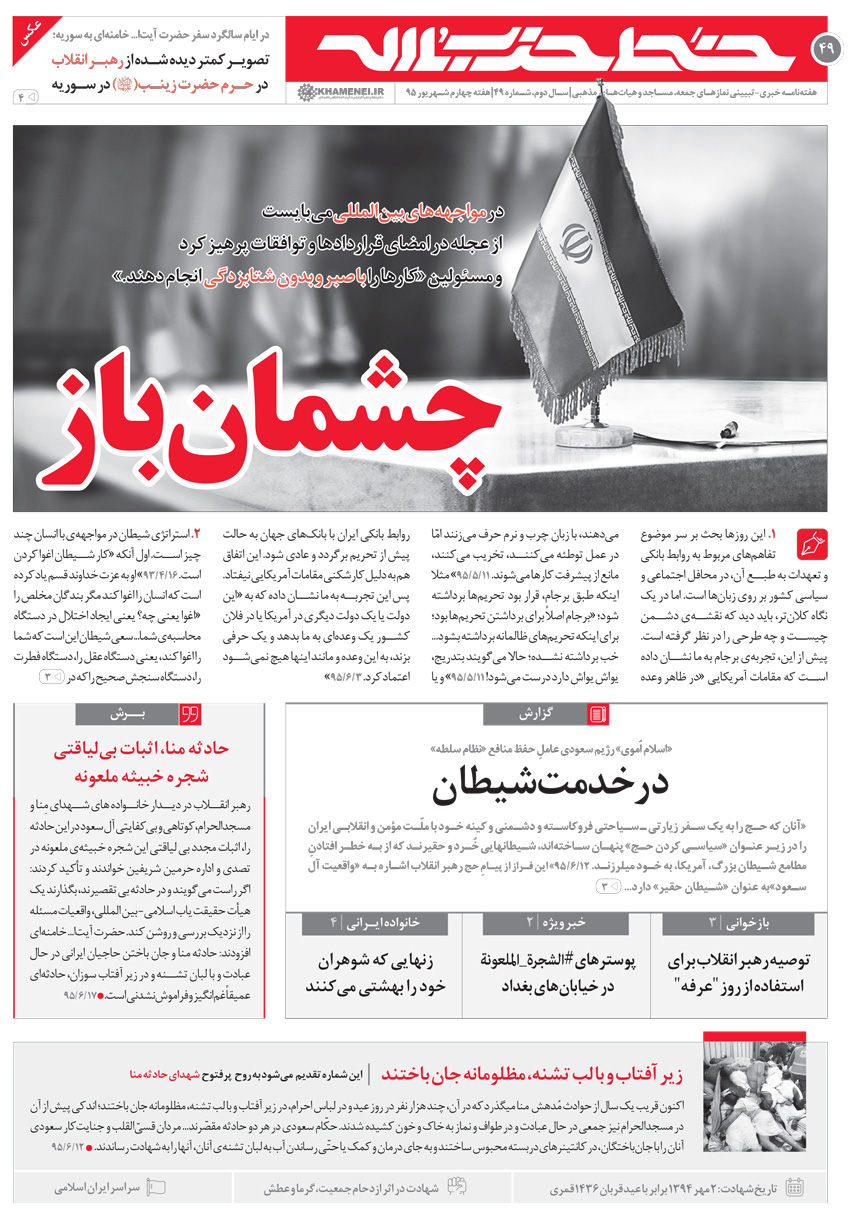 چهل و نهمین شماره خط حزبالله به روح پرفتوح شهدای حادثه منا تقدیم شده است.