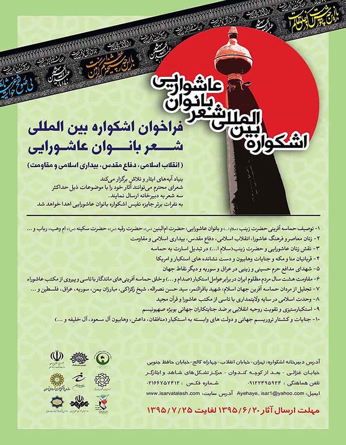 چهارمین اشکواره شعر بانوان عاشورایی به همت «بنیاد آیههای ایثار و تلاش» و مشارکت حوزه هنری سازمان تبلیغات اسلامی، وزارت فرهنگ و ارشاد اسلامی و... برگزار میشود.