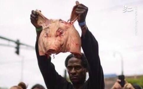 "خوک کثیف" اصطلاحی هست که سیاهپوستای آمریکایی به پلیس نسبت میدن! سر یک " خوک" بر دستان معترضان خشمگین آمریکایی که علیه اقدامات نژاد پرستانه پلیس آمریکا و قتل «جورج فلوید» به خیابان ها آمدهاند.