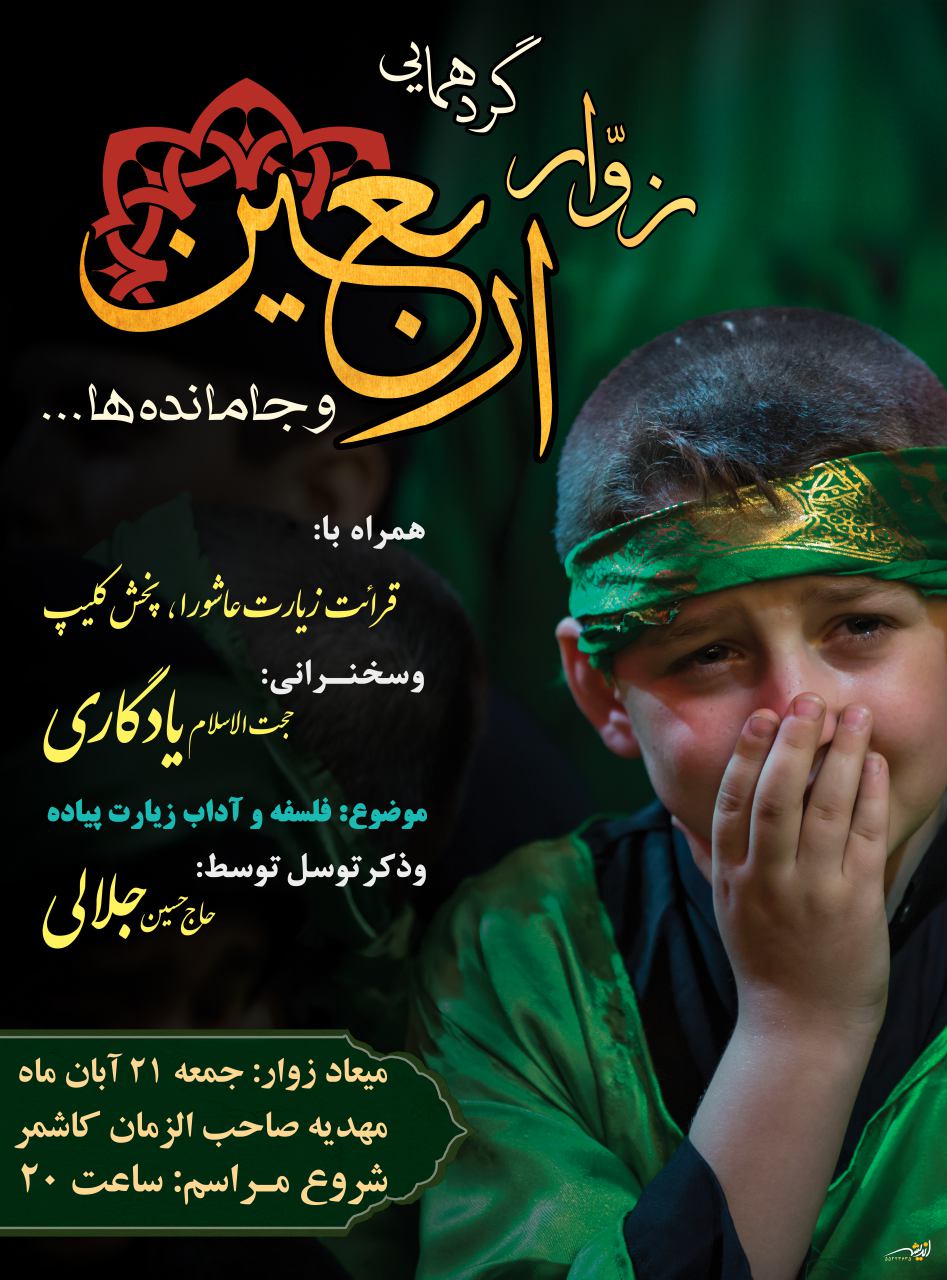 دبیرجبهه فرهنگی کاشمر خاطر نشان کرد: گردهمایی زوار اربعین نیز روز جمعه 21 آبان ماه در مهدیه صاحب الزمان از ساعت 20 برگزار می شود.