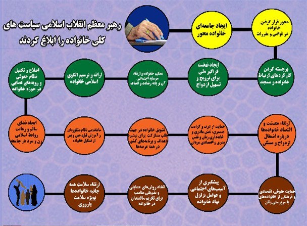 خانواده واحد بنیادی و سنگ بنای جامعه اسلامی و کانون رشد و تعالی انسان و پشتوانه سلامت و بالندگی و اقتدار و اعتلای معنوی کشور و نظام است و سمتوسوی حرکت نظام باید معطوف باشد به:
