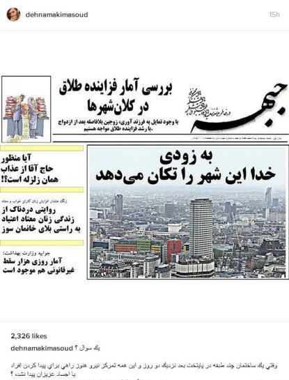 به گزارش حلقه وصل، مسعود دهنمکی در پست جدید خود در فضای مجازی به فاجعه پلاسکو عکسالعملی متفاوت نشان داد.