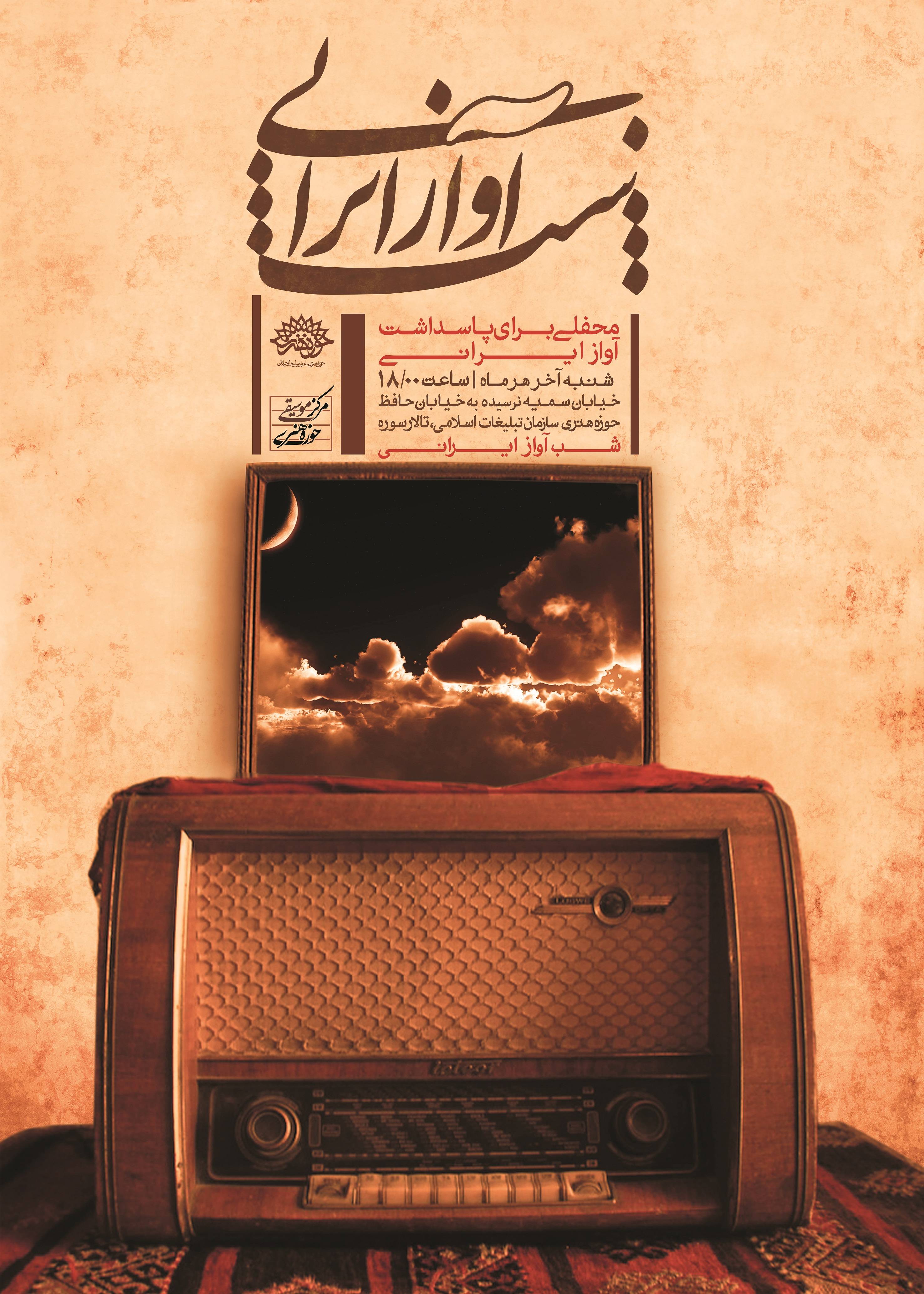 هجدهمین شب آواز ایرانی به همت مركز موسیقی و موسسه فرهنگی هنری سپهر سوره هنر شنبه 30بهمنماه ساعت 18 در تالار «سوره» حوزه هنری واقع در خیابان سمیه نرسیده به حافظ برگزار میشود. ورود برای عموم علاقهمندان آزاد است.