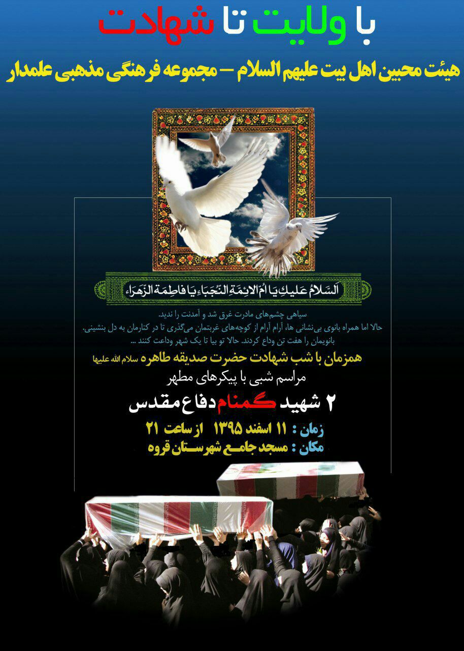 جلالی ادامه داد: فردا همزمان با سالروز شهادت حضرت زهرا(س) نیز مراسم تشییع و خاکسپاری این دو شهید از مقابل مسجد جامع به سمت دانشگاه ازاد اسلامی قروه برگزار می گردد.