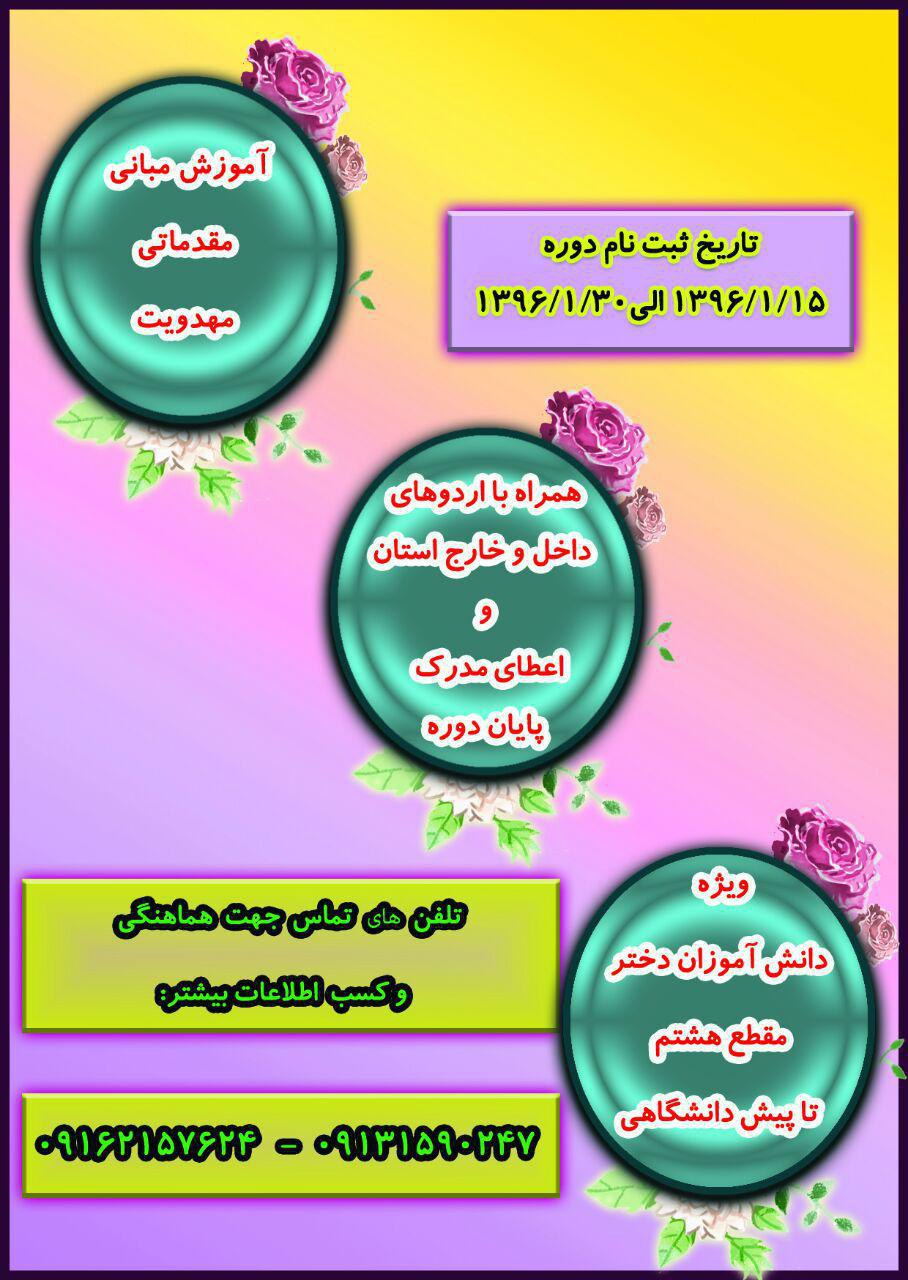 وی بیان داشت: این دوره باعنوان «تا انتها حضور» ویژه دختران دانش آموز مقطع هشتم تا پیش دانشگاهی اجرا می گردد.