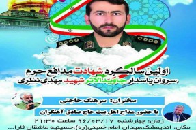 سالگرد شهادت پاسدار شهید مهدی نظری ساعت ۲۱:۳۰ در حسینیه عاشقان ثارالله اندیمشک برگزار میشود.