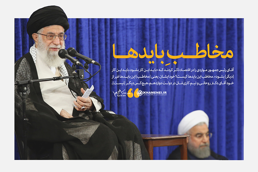 به گزارش حلقه وصل، بیانات حضرت آیتالله خامنهای که در این نماهنگ می بینید: «مخاطب این بایدها کیست؟ خود ایشان. یعنی [مخاطب] این بایدها غیر از خود آقای دکتر روحانی و تیم کاریشان در دولت دوازدهم، هیچکس دیگر [نیست]؛ یعنی غالب این کارها، حالا بخشی از آنها ممکن است به مجلس یا به قوّهی قضائیّه یا به بعضی جاهای دیگر ارتباط پیدا کند، امّا عمدهاش کارهای خود مسئولین دولتی است؛ این بایدها را خود اینها بایستی انجام بدهند؛ اینها واقعیّت است. مسئلهی اقتصاد خیلی مهم است.»۱۳۹۶/۰۳/۲۲
