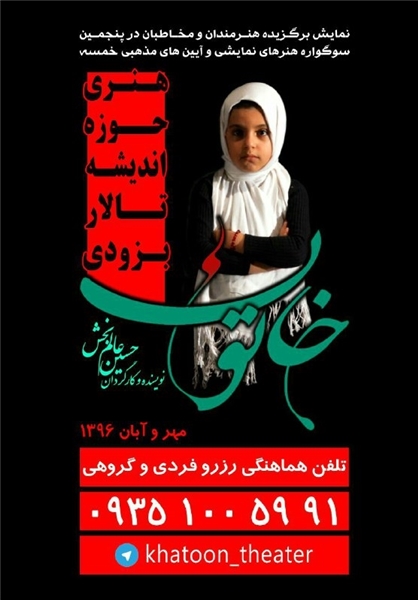 به گزارش حلقه وصل، حسین عالم بخش، کارگردان نمایش جدید «خاتون» که قرار است به زودی در تالار اندیشه حوزه هنری اجرای خود را درباره حضرت رقیه(س) آغاز کند عنوان کرد: اجرای این نمایش قرار است از بیست مهر به بعد در حوزه آغاز شود که البته تاریخ دقیق آن هنوز مشخص نشده است.