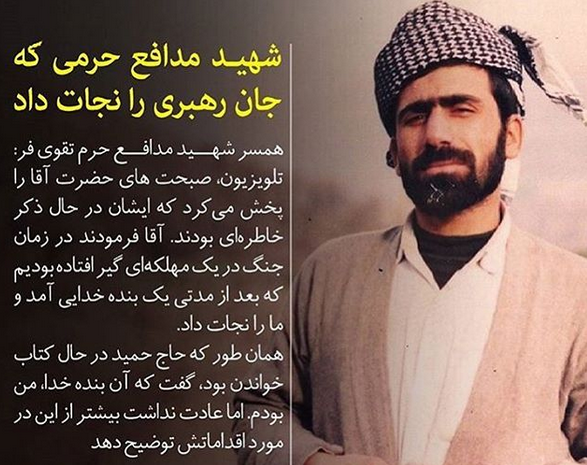 به گزارش حلقه وصل، علیرضا قزوه، شاعر در صفحه شخصی اش با انتشار خاطره «نجات جان مقام معظم رهبری» توسط شهید مدافع حرم (تقوی فر) به روایت همسرش نوشت: