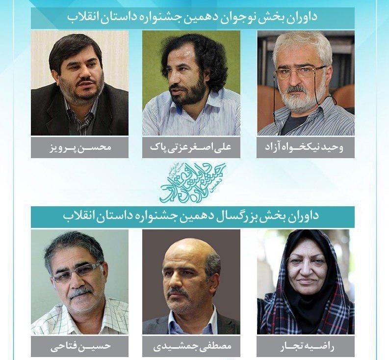 به گزارش حلقه وصل، در دهمین جشنواره داستان انقلاب (جایزه امیرحسین فردی)، وحید نیکخواه آزاد، علی اصغر عزتی پاک و محسن پرویز آثار بخش نوجوان و راضیه تجار، مصطفی جمشیدی و حسین فتاحی آثار بخش بزرگسال را ارزیابی و داوری میکنند.