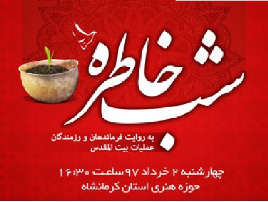 به گزارش سرویس استان های حلقه وصل، ویژه برنامه ی «شب خاطره» با روایت رزمندگان و فرماندهان عملیات بیت المقدس در کرمانشاه برگزار می گردد.