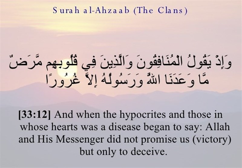 3- در میان یاران پیامبر، برخی دچار شک و تردید و برخی دچار نفاق و دورویی بودند. «ما وَعَدَنَا اللّهُ وَ رَسُولُهُ إِلاّ غُرُوراً»