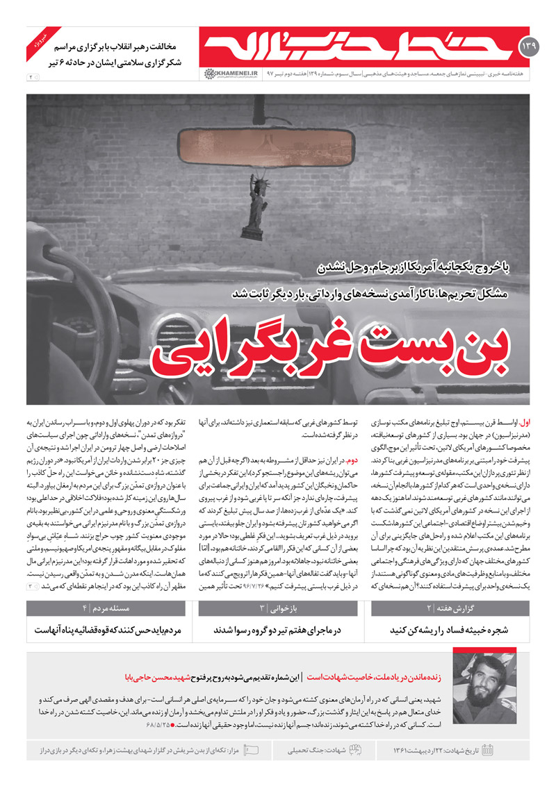 همچنین در دیدار روز گذشته مسئولان قوه قضاییه با رهبر انقلاب، ایشان به موضوع مهم مبارزه قاطع و صریح با مفاسد و مفسدان اقتصادی پرداختند. موضوعی که رهبر انقلاب در طول دوران رهبری خود نسبت به آن به مسئولین تذکر دادهاند. به همین جهت خط حزبالله در این شماره به توصیههای رهبر انقلاب به مسئولین برای مبارزه با فساد پرداخته است.