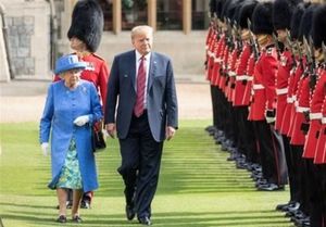 ترامپ گفت: «ما با ملکه که فردی کاملا فوقالعاده است، دیدار کردیم و به من گفته شد که او برای اولین بار طی ۷۰ سال گذشته است که از گارد سلطنتی خود بازدید میکند.»