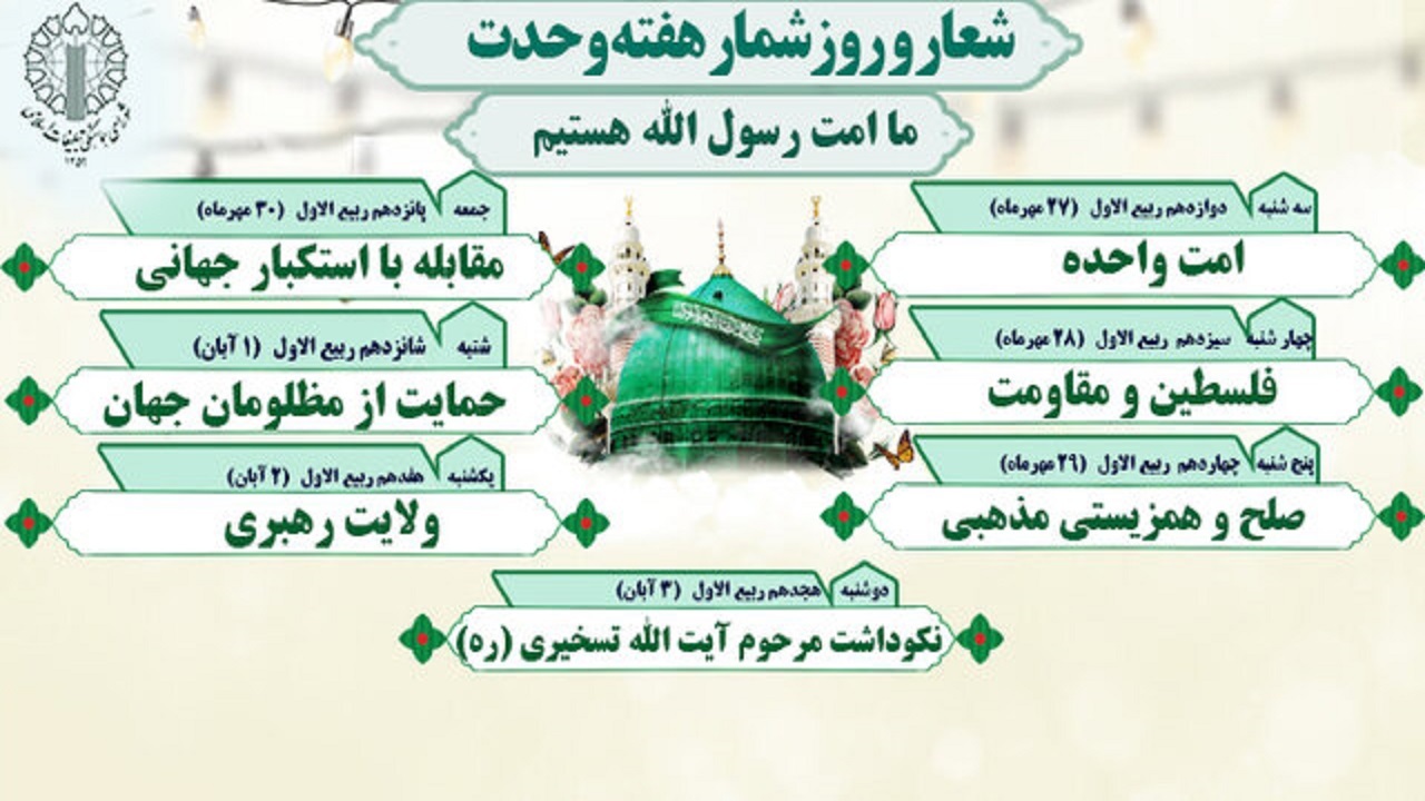 عناوین روزشمار هفته وحدت: