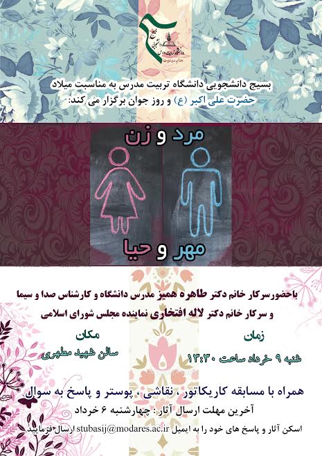 به گزارش حلقه وصل، به مناسبت روز جوان نشست «مرد و زن ، مهر و حیا» به همت بسیج دانشجویی دانشگاه تربیت مدرس برگزار میشود.