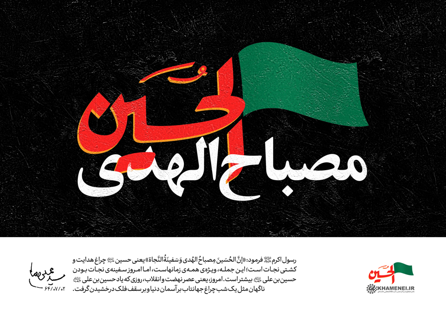 به گزارش حلقه وصل، حضرت آیتالله خامنهای : «رسول اکرم(صلیالله علیه و آله و سلم) فرمود: «إنَّ الحُسَینَ مِصباحَ الهُدی وَ سَفینَةُالنَّجاة» یعنی حسین علیهالسلام چراغ هدایت و کشتی نجات است؛ این جمله، ویژهی همهی زمانهاست، اما امروز سفینهی نجات بودن حسینبنعلی علیهالسلام بیشتر است. امروز، یعنی عصر نهضت و انقلاب، روزی که یاد حسینبنعلی علیهالسلام ناگهان مثل یک شبچراغ جهانتاب بر آسمان دنیا و بر سقف فلک درخشیدن گرفت.» ۶۴/۰۷/۰۲