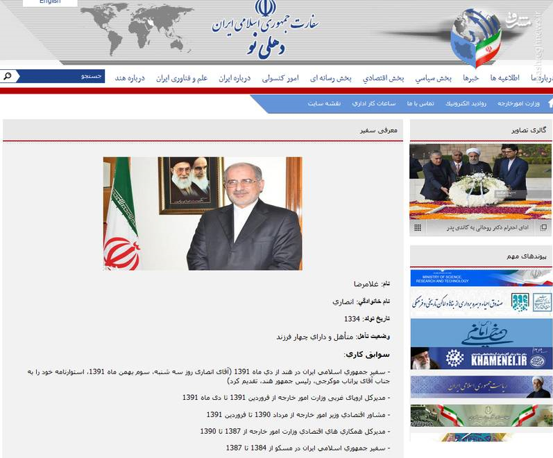 بخش معرفی سفیر ایران در سایت سفارت نیز همچنان همان سفیر قبلی را نشان میدهد که با این حساب میتوان گفت سفارت ایران در کشور مهم هندوستان بیش از ۲۰۰ روز است سفیر ندارد.