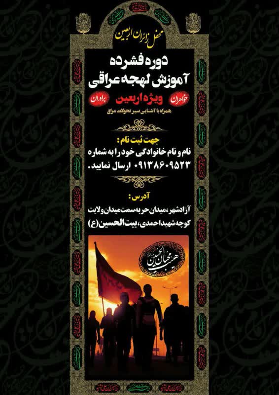 عضو شورای مرکزی هیئت محبان الحسین(ع) یزد ادامه داد: در کنار آموزش لهجه عراقی آشنایی با فرهنگ عراق، تحولات این کشور و آداب آن ها نیز مطالبی در طول دوره مطرح می گردد.