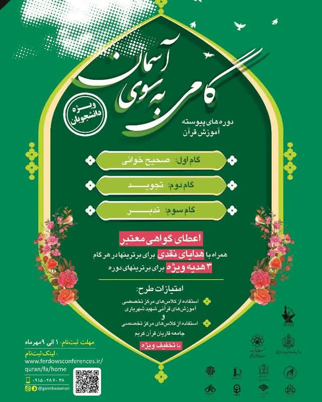 رویا بخشی زاده مدیر اجرایی طرح «گامی به سوی آسمان» در دانشگاه های خراسان رضوی به حلقه وصل گفت: آموزش قرآن «گامی به سوی آسمان» به همت ستاد احیا و هماهنگی فعالیتهای قرآن و عترت(ع) دانشگاه ها و مراکز آموزش عالی (واحد قرآن و عترت(ع) نهاد نمایندگی مقام معظم رهبری در دانشگاههای استان) با مشارکت شهرداری مشهد، جهاد دانشگاهی در سطح دانشگاه ها، ویژه دانشجویان در سال تحصیلی 97-98 و فارغ التحصیلان سال 97 برگزار می شود.