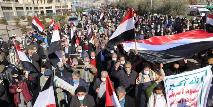 راهپیمایان در این مراسم، با شعارهای «الله اکبر» و «مرگ بر آمریکا»، «مرگ بر اسرائیل» و «مرگ بر آل سعود»، خشم و انزاجار خود را از حدود 7 سال کشتار بیوقفه مردم یمن اعلام کردند.