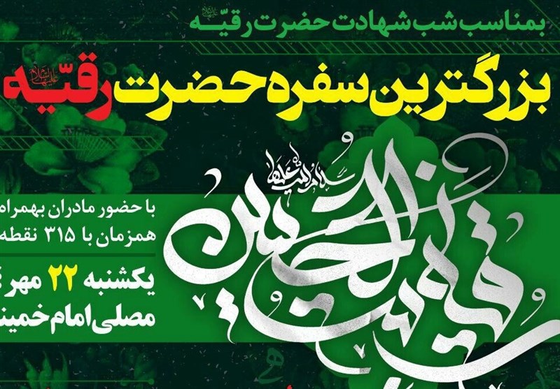 وی اعلام کرد: سفره حضرت رقیه(س) امسال در شهرهای نجف، کربلا، مشهد، قم، شهرری، کاظمین، سوریه، تهران و همچنین در کشورهایی نظیر عراق، کانادا، آمریکا، پاکستان، هند، کویت و افغانستان برپا میشود.