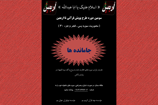 عارفی تصریح کرد: در این برنامه به مدت 10 روز تا اربعین سوره هایی مانند یس، فجر و جزء ۳۰ قرآن کریم مورد نظر است که توسط علاقه مندان قرائت می گردد.