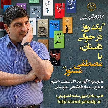به گزارش سرویس استان های حلقه وصل، کارگاه آموزشی «یک روز در حوالی داستان با مصطفی مستور» ۲۱ آبانماه با حضور این نویسنده در اهواز برگزار میشود و داستاننویسان و علاقهمندان به هنر داستاننویسی میتوانند در این کارگاه شرکت کنند.