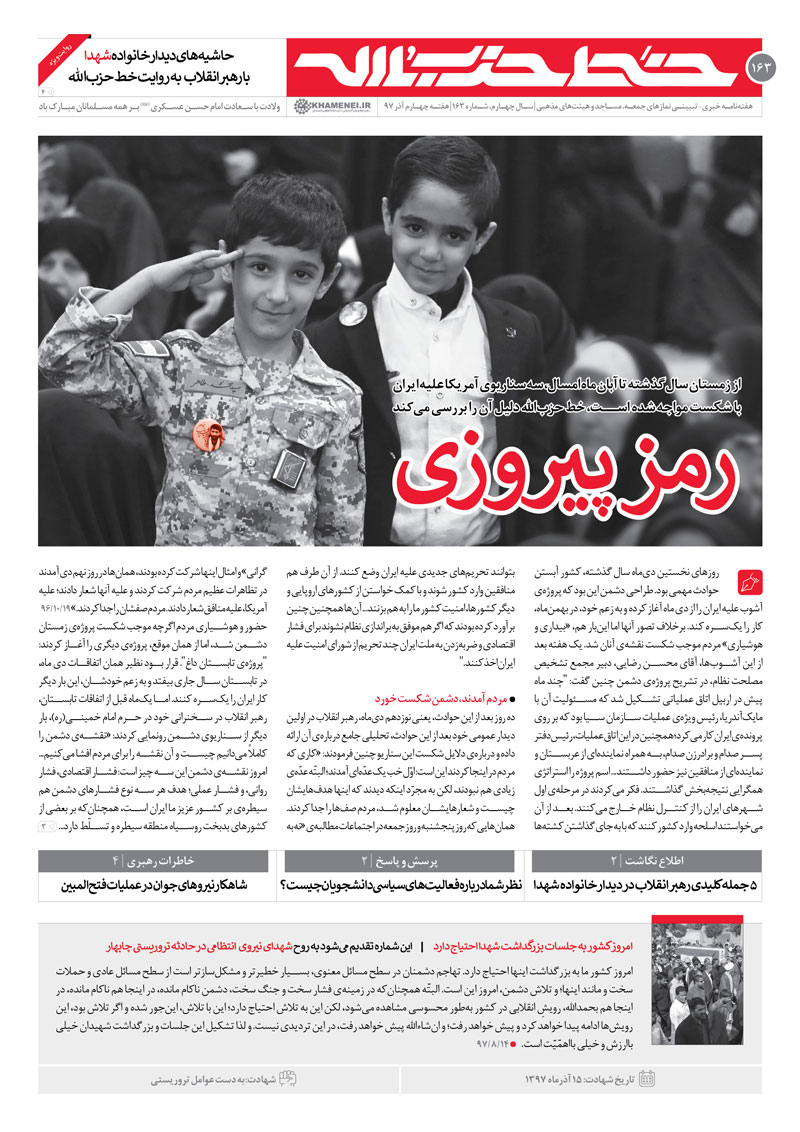 طبق رسم هفتگی خط حزبالله نیز شماره ۱۶۳ این هفتهنامه به روح شهدای نیروی انتظامی که در حادثه تروریستی چابهار به شهادت رسیدند تقدیم میشود.