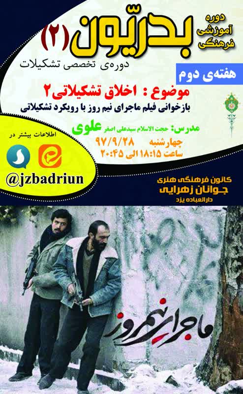 این فعال فرهنگی ادامه داد: در این دوره در خدمت حجت الاسلام سید علی اصغر علوی، حجت الاسلام امامی و حجت الاسلام مهدوی نژاد هستیم و در این جلسه به بازخوانی فیلم سینمایی «ماجرای نیمروز» خواهیم پرداخت.
