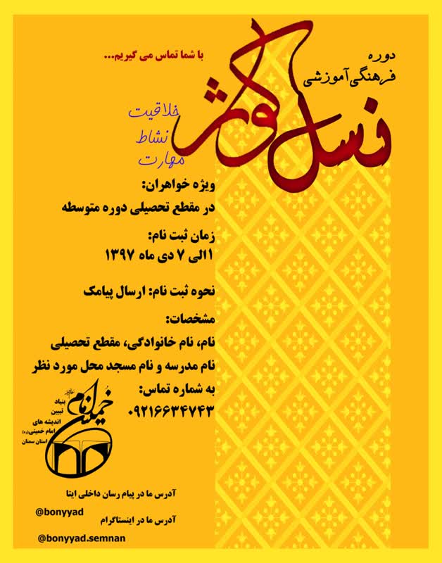 مهدوی نژاد ادامه داد: این دوره ویژه پسران دانش آموز هم در قالب ؟«نسل سلمان» از تابستان سالجاری آغاز شده است و همچنان ادامه دارد.