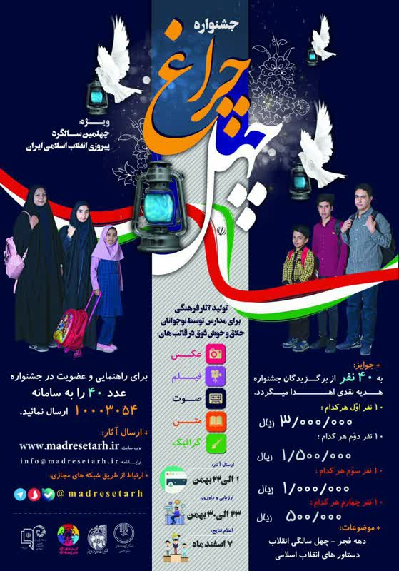 به گزارش سرویس استان های حلقه وصل، در آستانه جشن چهل سالگی پیروزی انقلاب شکوهمند انقلاب اسلامی ایران، کانون فرهنگی هنری شمیم بهشت با همکاری اداره کل تبلیغات اسلامی استان اصفهان و دفتر تبلیغات اسلامی اقدام به برگزاری جشنواره «چهل چراغ» کرده است.