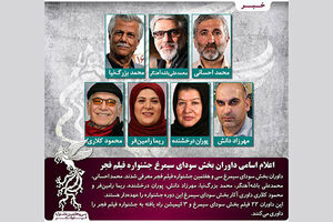 این داوران ۲۲ فیلم بخش سودای سیمرغ و ۳ انیمیشن راه یافته به جشنواره فیلم فجر را داوری میکنند.