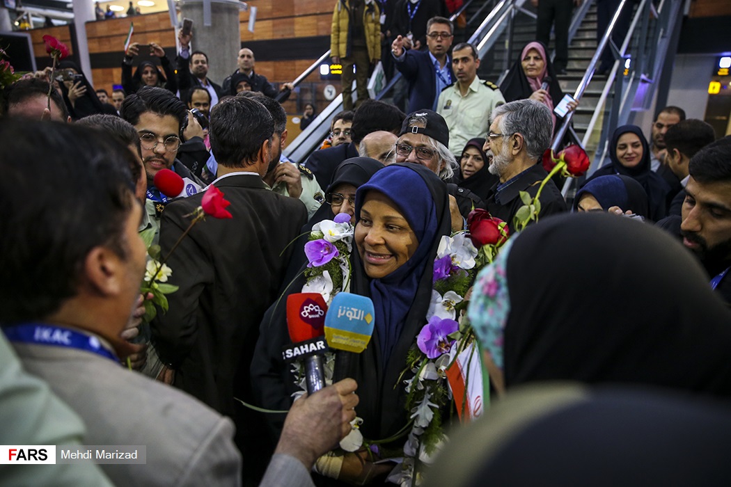 وی در پاسخ به سؤالهای خبرنگاران اظهار داشت: بعد از اینکه این اتفاق برای من افتاد متوجه شدم که جمهوری اسلامی چقدر برای دولت آمریکا مهم است و آنها نگران ۴۰ سالگی انقلاب اسلامی ایران هستند. اما این را بدانید که شما ملت ایران راه درستی را پیش میروید و خدا اناشاءالله رهبر انقلاب را برای ما حفظ کند. اگر شما در خارج از کشور باشید ارزش رهبر، وطن و جمهوری اسلامی ایران را متوجه خواهید شد.