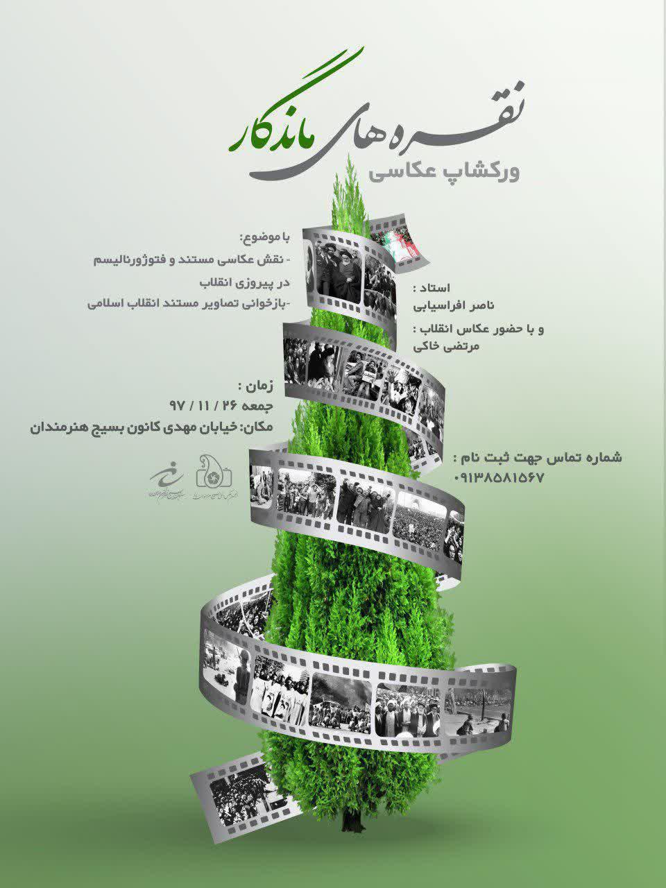 وی اضافه کرد: ورکشاپ نیز در محل کانون بسیج هنرمندان واقع در خیابان مهدی برگزار و عکاسان، فعالان فرهنگی، بسیجیان و علاقه مندان جهت حضور می توانند با شماره 09138581567 تماس بگیرند.