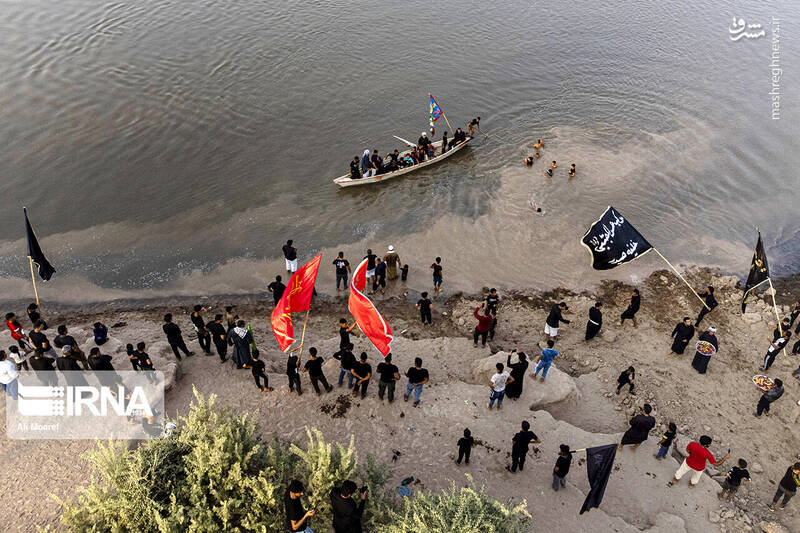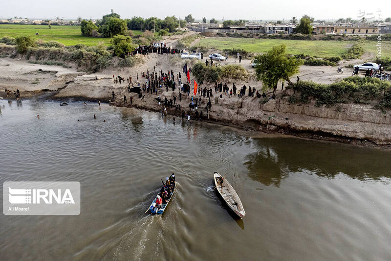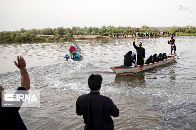 به گزارش حلقه وصل، اهالی روستا آن سوی رود دز با مداحی و برافراشتن بیرق وطبق های پذیرایی از زواری که با قایق های صلواتی از رودخانه عبور کردهاند استقبال میکنند.