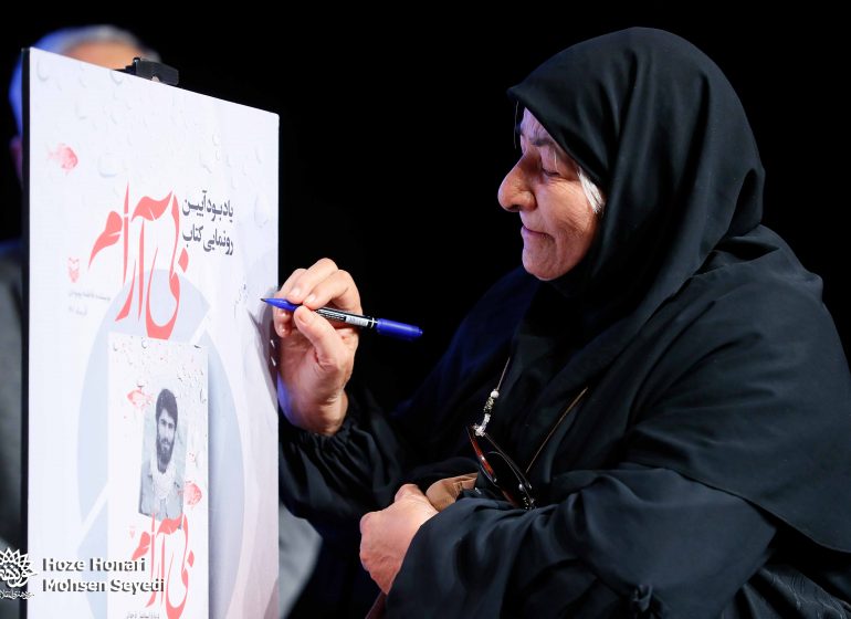سپس خانم بهبودی، مولف کتاب بیآرام، با شرح فرآیند نگارش کتاب حاضر، به عنایات شهید در هنگام نگارش آن نیز اشاراتی داشت.