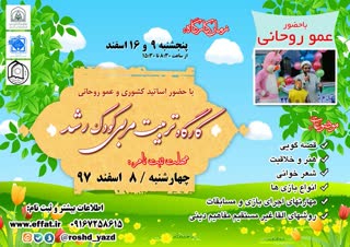 مسئول برگزاری دوره با اشاره به اینکه دوره در روزهای 9 و 16 اسفند برگزار می شود افزود: علاقمندان می توانند برای کسب اطلاعات بیشتر و ثبت نام به نشانی اینترنتی www.EFFAT.IR و یا به نشانی @roshd_yazd در پیام رسان های سروش و ایتا مراجعه کنند.